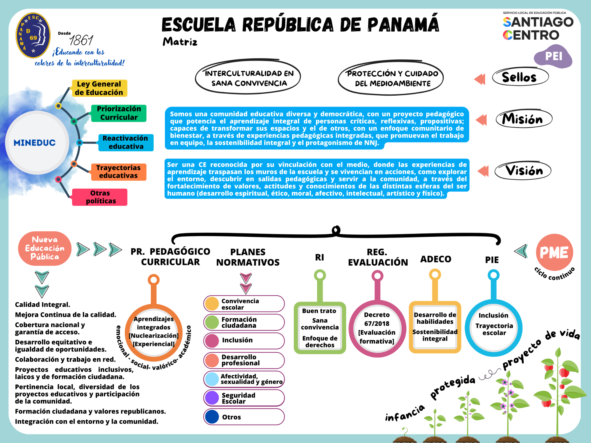 La Escuela República de Panamá, nace en Julio de 1861, Uno de los objetivos principales es Propiciar aprendizajes de calidad en las niñas y niños que sean pertinentes y consideren las diversidades étnicas, lingüísticas y de género, y las necesidades educativas especiales junto a otros aspectos culturales significativos de ellos, sus familias y comunidades